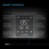 This intelligent humidifier is engineered for all-season performance, delivering precise vapor output to help maintain ideal humidity levels for year-round plant growth. Capable of warm mist output, it improves moisture distribution in cold environments where humidification is inefficient, reducing water usage while achieving optimal moisture levels. In addition, it utilizes an advanced UV-C sterilization system to purify the water supply before misting, promoting a cleaner and healthier grow environment. The misting is powered by a next-gen EC ultrasonic vaporizer with 10 levels of hot and cold mist for ultra-precise, customizable humidity control. Smart programming features VPD and humidity triggers, timers, auto-start with backup memory, and a backlit display that can be turned off to prevent night cycle disruption. This product is a part of the UIS™ platform of grow devices and smart controllers, designed to unite with the AC Infinity app over WiFi to achieve your ideal environment.