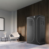 A grow tent designed to grow plants indoors by providing complete control over climate conditions. It features a secondary chamber where the top half is used for plants in their vegetative stages, and the bottom half for those in their seedling stages. This grow tent uses a waterproof oxford canvas with a 2000D thickness for higher durability and light-proofing. Cross-patterned diamond mylar lines the surface of the inner walls, which will reflect and maximize output from your grow light. The genuine SBS™ zippers ensure maximum convenience by smoothly and securely gliding along the track. An inner ribbon stitching creates a seal that lines the SBS™ zipper inside the grow tent to ensure maximum reflectivity and prevent light leaking. This is paired with a protective cover that runs the length of the front zipper for further protection against intrusive lighting. The duct ports can also close on either side to reinforce this light-proof sealing. Accessories include a waterproof floor tray, a detachable tool bag, additional roof hanging bars, and a mounting plate to install your controller onto the grow tent.